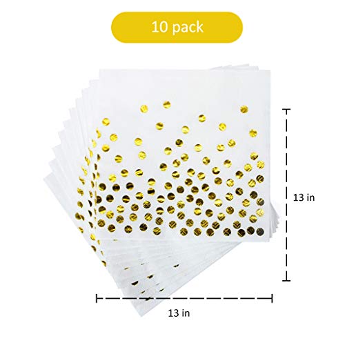 Amycute Bianca e Oro Stoviglie per Feste, Pois Dorati Piatti di Carta Bicchieri Tovaglioli per Compleanni Matrimonio Nascita Battesimo Party