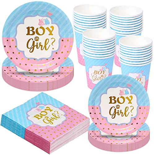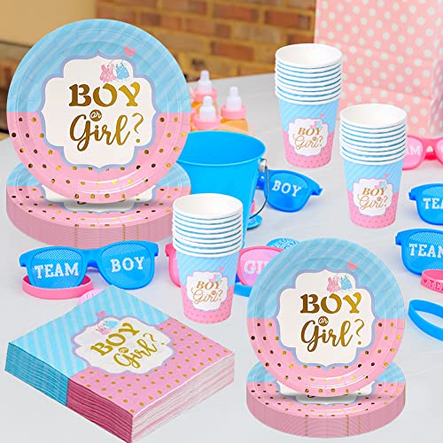 Amycute 100 Pcs Piatti Kit Gender Reveal Party Boy Or Girl Tovaglioli Piatti e Bicchieri Carta per Feste Compleanno, Baby Shower