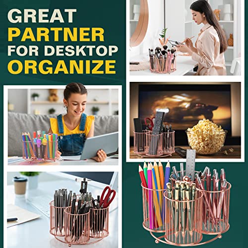 Amyzavls Portapenne Rotante da Scrivania, Organizer da Scrivania, Portapenne Antigraffio con 4 Scomparti, Grande Capacità, Stile Moderno per Ufficio, Scuola, Studio 【Oro rosa】