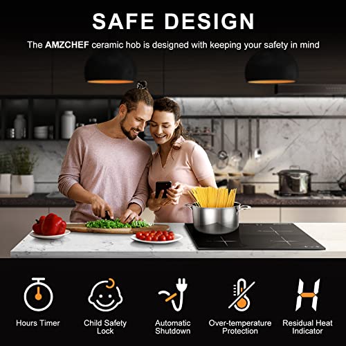 AMZCHEF Piastra induzione,piano cottura 4 fuochi,9 livelli di potenza,funzione di pausa,controllo touch scorrevole,blocco bambini,protezione dal surriscaldamento,7000 W