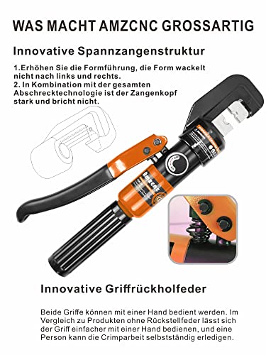 AMZCNC Pinza crimpatrice idraulica a 8 tons, 4 - 70 mm², con 9 paia di pinze (4 - 70 mm²) + forbici)