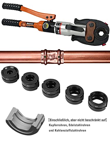 AMZCNC Pinza a pressa idraulica professionale con ganasce a pressione, profilo M 12-15-18-22-28, set di utensili per pressare, per tubi in rame.