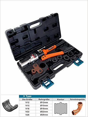 AMZCNC Pinza pressa idraulica professionale con ganasce a pressione, profilo a V 12-15-18-22-28 Set di utensili per pressare, per tubi in rame, tubo in acciaio C e tubi in acciaio inox,