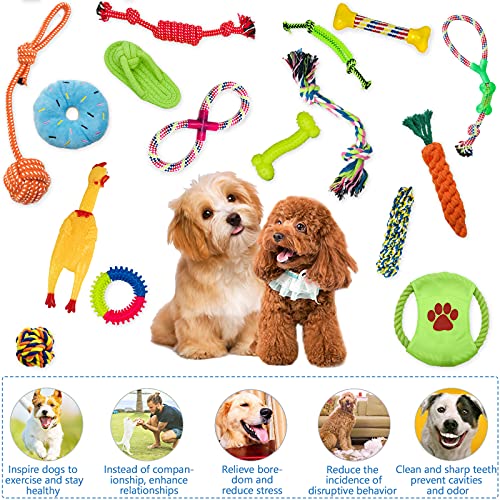 Squisito set di 16 pezzi di giocattoli per cani: I set di giocattoli comprendono giocattoli interattivi, giocattoli da masticare, in grado di soddisfare diverse richieste di cani.