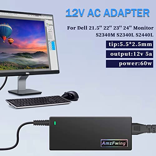 AmzFwing 12V 5A caricabatteria di alimentazione per Dell Monitor 21.5 "22" 23" 24" 27" IPS, AOC LCD Monitor 16" 20" 22" 23" 24" 27";