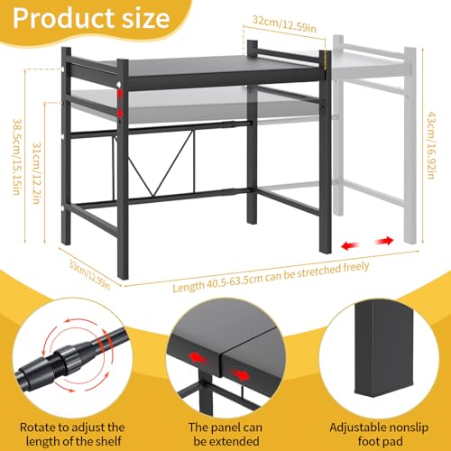 【Ripiano per microonde regolabile】: Il pannello del ripiano della cucina può essere regolato da 40,5 cm a 63,5 cm e l'altezza del piatto del ripiano per microonde può essere regolata da 30 cm a 38 cm. Ciò lo rende un organizer da cucina ideale per microonde e altri elettrodomestici, adatto a elettrodomestici da cucina di molte dimensioni come microonde, forni, caffettiere, tostapane e altro ancora.