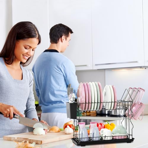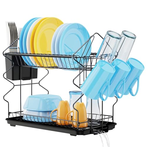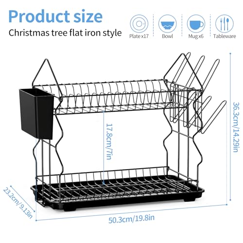 AMZJMT Scolapiatti Nero,Scolapiatti a 2 Livelli Scolapiatti con vaschetta scolapiatti,Scolapiatti da appoggio,Scolapiatti a Forma di Albero di Natale scolapiatti per la Cucina
