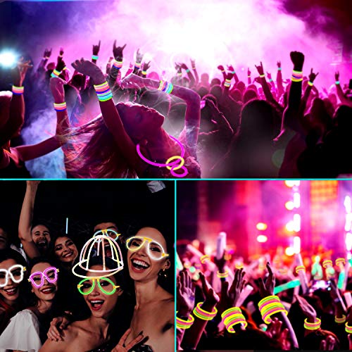 AMZJUPWM Braccialetti Luminosi Fluorescenti 490pcs, Glow Stick 106 Connettori Bagliore Colorato bastoni Bulk Palle di Fiori, Bicchieri Luminosi e Triple Bracciali (100PCS)