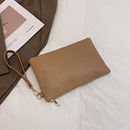 AMZLORD Borsa della borsa della borsa della frizione di lusso della chiusura lampo di colore solido della borsa della, cachi