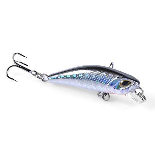 AMZLORD Minnow - Esca dura da pesca con 3 ami da pesca (argento)
