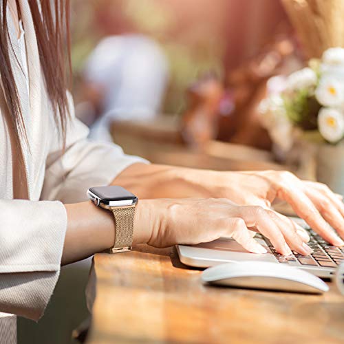 Amzpas Sottile Cinturino Compatibile per Apple Watch 38mm 40mm/ 42mm 44mm, Cinturino in Acciaio Inossidabile con Sottile in Metallo per iWatch Serie 6 5 4 3 2 1 SE (42/44mm, Oro Rosa)