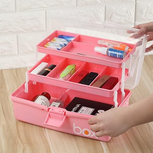 AMZPDD Organizzatore Portatile, Pieghevole, Trasparente, A 3 Strati In Plastica Per Il Cucito, Cassetta Degli Attrezzi, Organizzatore Di Materiali Per L'artigianato, Kit Di Pronto Soccorso(Rosa)
