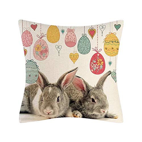 AMZQJD 4 federe per cuscini pasquali, stile coniglio, decorative, in cotone, lino (45 x 45 cm, uovo di Pasqua rosa)