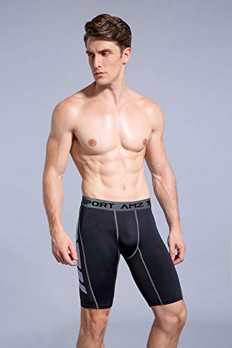 AMZSPORT Pantaloncini a Compressione Sportivi da Uomo Collant da Corsa Cool Dry Base Layer Leggings Pantaloncini da Allenamento Pantaloni da Allenamento