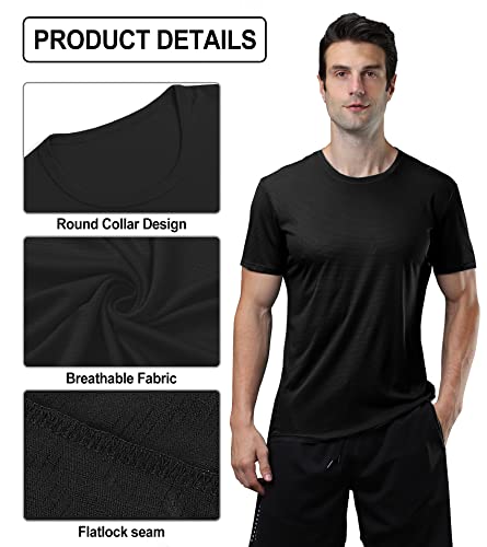 AMZSPORT T-Shirt Sportiva da Uomo Rapida Asciugatura Maglietta Sport a Manica Corta, 3 Confezioni, Nero S