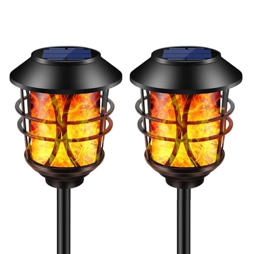 Luce solare in metallo: realizzata in metallo di alta qualità e può essere utilizzata all'aperto per anni. Ha 96 luci a LED che creano un'atmosfera rilassante come una fiamma, ballando nel vento