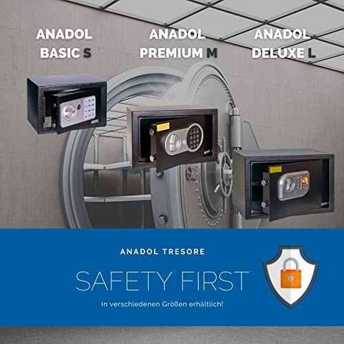 Anadol Tresor Basic Cassaforte elettronica con serratura a combinazione e chiave, cassaforte per mobili, con doppio bullone, mini cassaforte da parete, in acciaio (Deluxe)