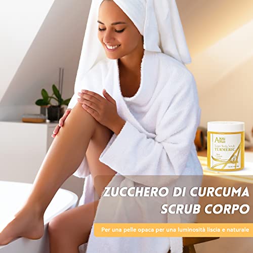 ANAiRUi Scrub Corpo Curcuma Body Scrub, Face Scrub per Corpo e Viso, per Iperpigmentazione Macchie scure, Esfoliante, Idratante & Nutriente, Arancione Dolce, 260g