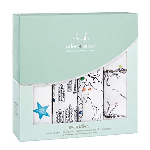 Aden + anais, fasce in mussola 100% cotone, 120 cm x 120 cm, confezione da 4