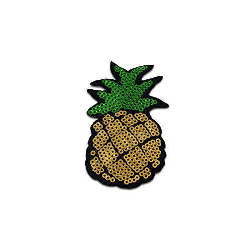 Ananas frutta con paillettes - Toppe termoadesive Patch Toppa ricamate, misura: 8,3 x 4,8 cm