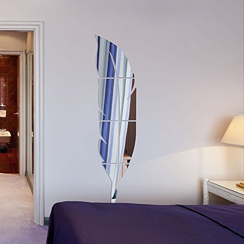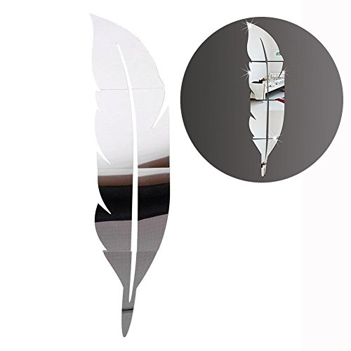 Anancooler Specchio della parete della piuma, Adesivi della parete dello specchio della stanza di vivere, Decalcomania domestica 3D di modo di acrilico 48 x 12 pollici (120 x 30cm)