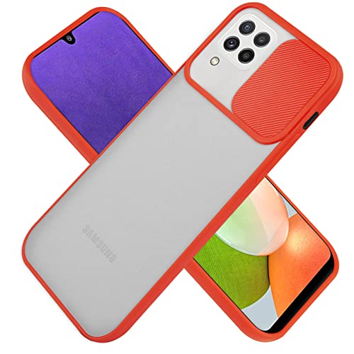 Anany cover per Samsung Galaxy A22 6.6", Custodia Scorrevole Design Protezione Fotocamera Parte Posteriore smerigliata [Rigida PC Posteriore + TPU Angoli] Ultra Sottile Leggero Antiurto - Red