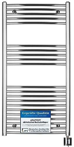 Anapont Scaldasalviette elettrico, cromato curvo, funzione timer, scaldasalviette, riscaldamento elettrico, riscaldamento asciugamani, prodotto in Germania