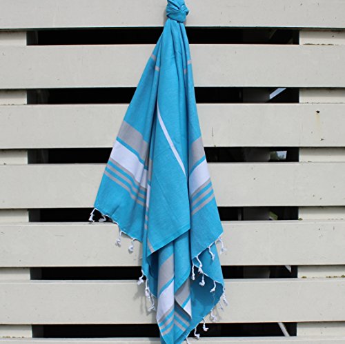 ANATURE Ocean Telo hammam - 100% cotone - Oeko-Tex Standard 100 CERTIFICAT - prewashed - Super Soft - Usare direttamente - Hamam - Asciugamano da bagno - Asciugamano Backpacker - Telo mare - asciugamano - Panno Baby - Turkish Towel - Pest mal - FOUTA, 100% cotone, Turquoise/Light grey