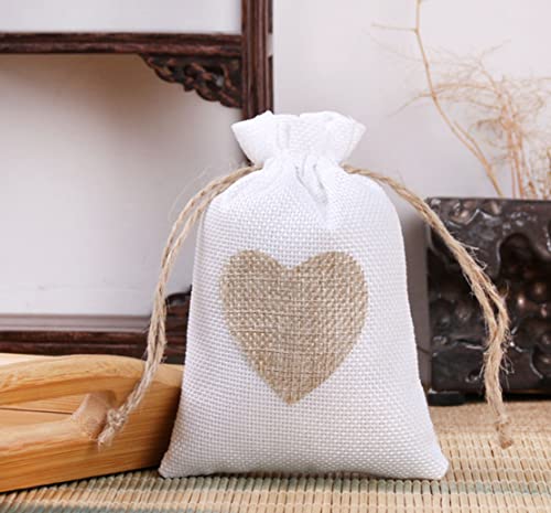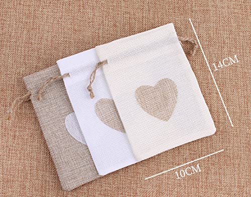 Anawakia Sacchetto in Iuta, Sacchetto in Tela di Iuta, Sacchetti in Tela di Iuta con Cordoncino e Motivo a Cuore per Confetto, Gioielli, Regalo per Matrimonio, Battesimo, Compleanno, Natale
