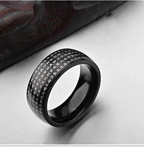 ANAZOZ Anelli in Acciaio Inossidabile,Sutra del Cuore Cinese 8MM Anello Uomo Nero Dimensioni Anello 22