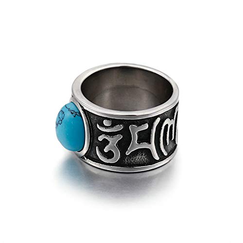 ANAZOZ Anello Fidanzamento Uomo,Anello da Uomo in Titanio Om Mani Padme Hum con Turchese Argento Anello Taglia 22(62)