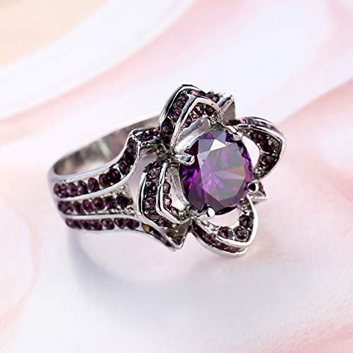 ANAZOZ Argento Anello Donna,Anello Placcato Argento Fiore con Rotonda Zirconia Cubica Viola Misura dell'Anello 15