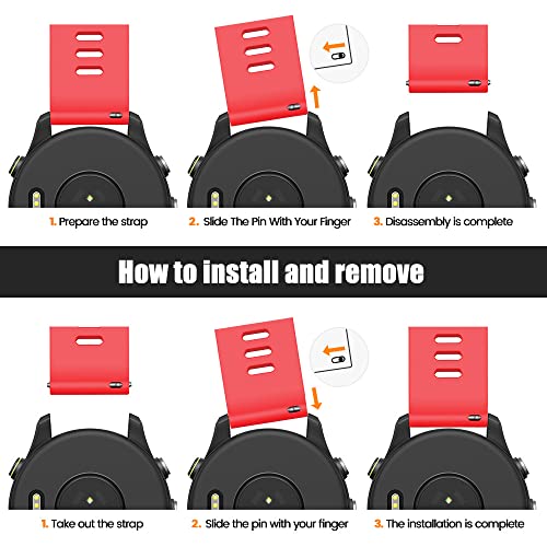 [Easy Match&Security] L'asta a molla a sgancio rapido da 22 mm è integrata in entrambe le estremità del cinturino sportivo Forerunner 255. È cucito con tecnologia di connessione senza cuciture senza perdere il perno. Il perno può essere facilmente infilato nella scanalatura e bloccato accuratamente. Può essere smontato con una sola chiave senza attrezzi.