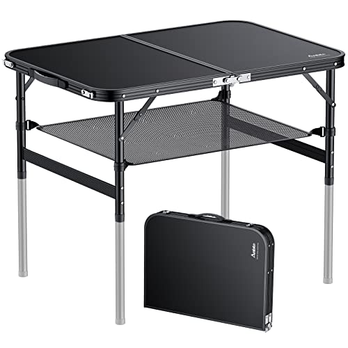 Anbte Tavolo Pieghevole Salvaspazio,90 * 60cm MDF Tavoli da Giardino Regolabile in Altezza con Rete di Immagazzinaggio Portatili Tavolo da Campeggio in Alluminio per Balcone/Barbecue/Mercatini-Nero