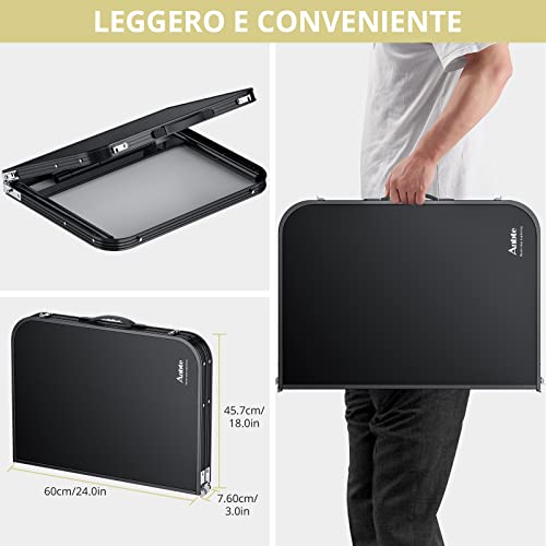 【Nuove Dimensioni e Peso Aggiornati】Questo tavolo pieghevole ha una dimensione di apertura di 36 "L x 24" W (90 cm x 60 cm), può essere utilizzato in 2 altezze e le gambe regolabili possono essere regolate da 15 "(45 cm) a 28 "(70 cm). La dimensione del pacchetto è 24 "x18" x3 "quando piegata a metà. Pesa solo 7,7 libbre (3500 grammi), ma può supportare fino a 70 libbre!