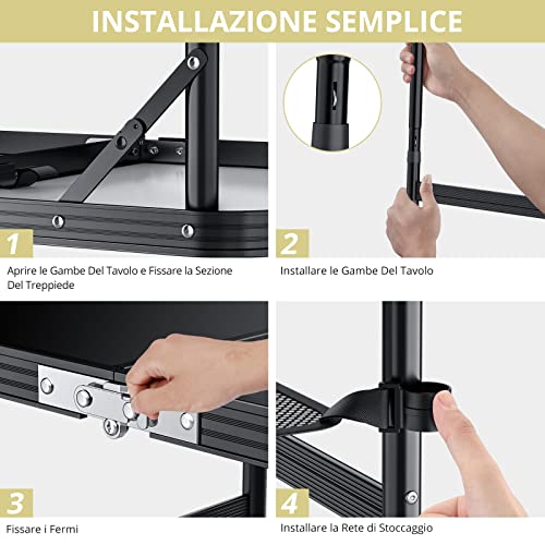 【Facile da Montare】A differenza di altri tavoli difficili da montare, usa il nostro tavolo da campeggio pieghevole ad altezza regolabile: basta aprire il tavolo da campeggio, inserire le gambe estese, fissare la serratura e è pronti per l'uso.