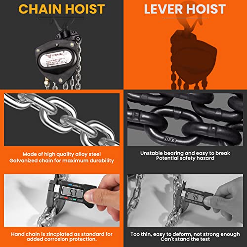 Anbull Paranco Manuale a Catena, Carrucola Manuale 2000kg, 3m, Catena Completamente Zincata, Niente olio e niente ruggine, Paranco Manuale, Peso del prodotto 16,5Kg