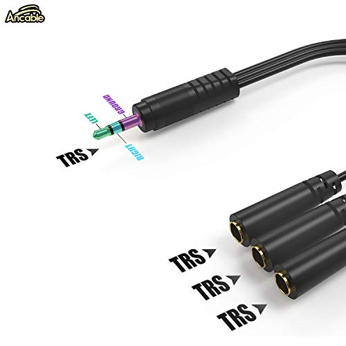 Ancable Cavo audio splitter stereo da 9 pollici 3,5mm (1/8 ") maschio a 3x femmina, Splitter a 3 vie placcato in oro