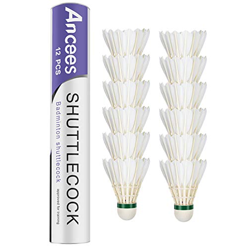 Ancees Volani da Badminton, Badminton Shuttlecok 12 Packs Training Sport White Goose Feather Piuma Volani Birdies Stabilità Volano Game Ball