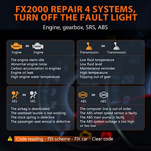 ANCEL FX2000 OBD2 Scanner Diagnosi Auto per Motore Trasmissione ABS SRS 4 Sistemi Scanner Diagnostica Automatico Lettore di Codici Strumento Diagnostico Professionale OBDII 10 Funzioni