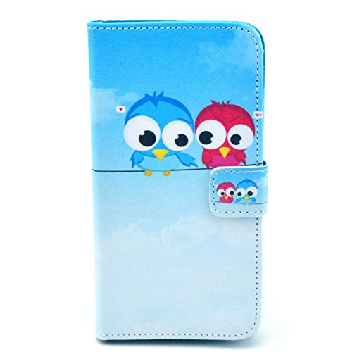 Ancerson più Colori PU Pelle Coperchio custodia Cover per Samsung Galaxy S5 mini G800 (non per S5 I9600) in vernice dipinto Stile Colorful Painting Flip Case Cover in ecopelle custodia con funzione leggio porta Carte beige gufi innamorati