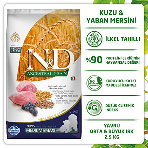 n&d ancestral grain dog lamb, spelt, oats and blueberry puppy medium & maxi 2.5kg