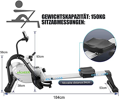 【Silenzioso】 ANCHEER Fitness Rowing Machine ha un design silenzioso, dotato di potenti ruote di controllo magnetico, un sistema di freno elettromagnetico silenzioso e senza manutenzione che ti consente di utilizzarlo in qualsiasi momento senza influenzare la tua famiglia o i tuoi vicini.