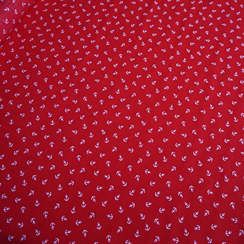 Anchor Nautical stampato in policotone tessuto - 3 colori (al metro), Policotone, Red, 100 x 112 centimeters