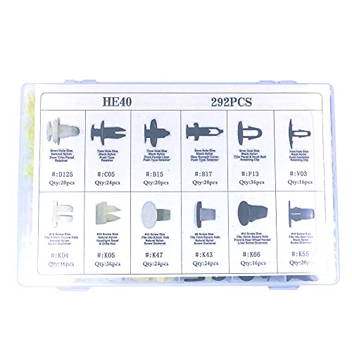 ANCLLO 292Pcs Rivetti di plastica per auto Rivetti di fissaggio Push Type Pin Rivetti Clip Trim Kit per Toyota e Mitsubishi