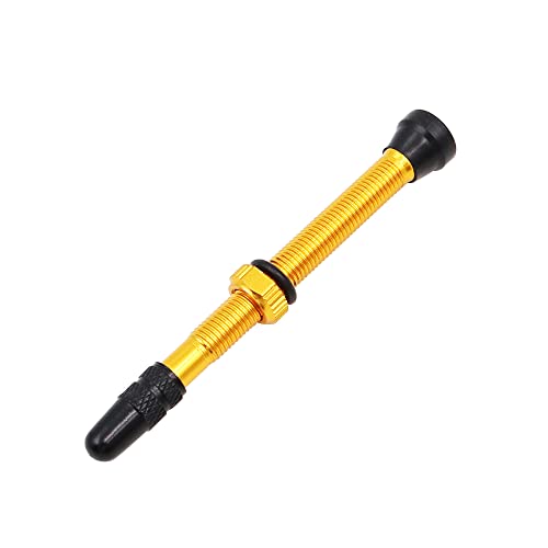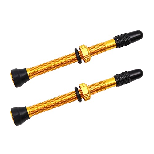 ANCLLO 2Pezzi Valvola Tubeless in Lega di Alluminio per Bicicletta Valvola Francese per Pneumatici da 60mm Tappo in Plastica Nera Coperture Antipolvere per Pneumatici a Vuoto di Bici da Strada-Giallo