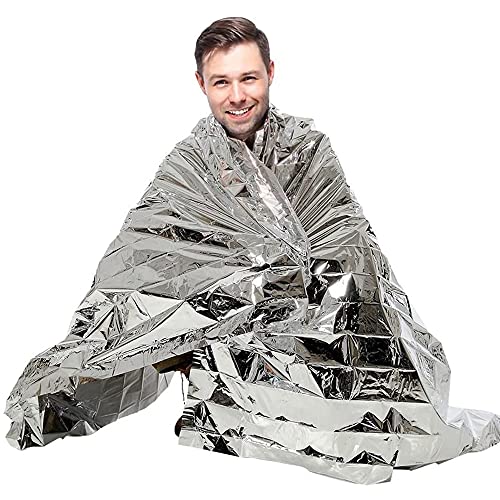 Ancllo - Confezione da 4 coperte termiche in Mylar di emergenza, progettate per escursioni, maratone di sopravvivenza o pronto soccorso (colore argento)
