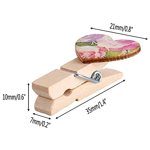 ANCLLO - Confezione da 100 mini mollette con cuori, Pezzi Mini Mollette di Legno Colorate Mollettine Decorative per Foto Matrimonio Artigianato con 30M Spago di Iuta