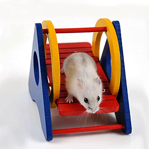 ANCLLO Criceto in legno con altalena arcobaleno, criceto da arrampicata, giocando a masticare criceto in legno e accessori per piccoli animali di criceto