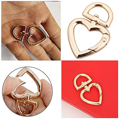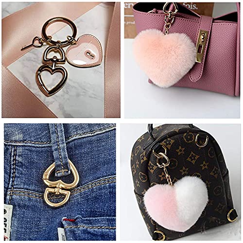 Ancllo - Fibbie girevoli a forma di cuore, in lega di zinco, larghezza esterna 7,2 cm, con chiusura a scatto, a molla, per portachiavi e anelli (dorato)